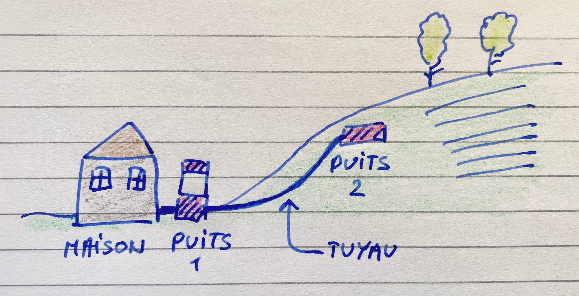 J'ai donc voulu raccorder le puits numéro 2 au puits numéro 1 pour le remplir quand il était vide.