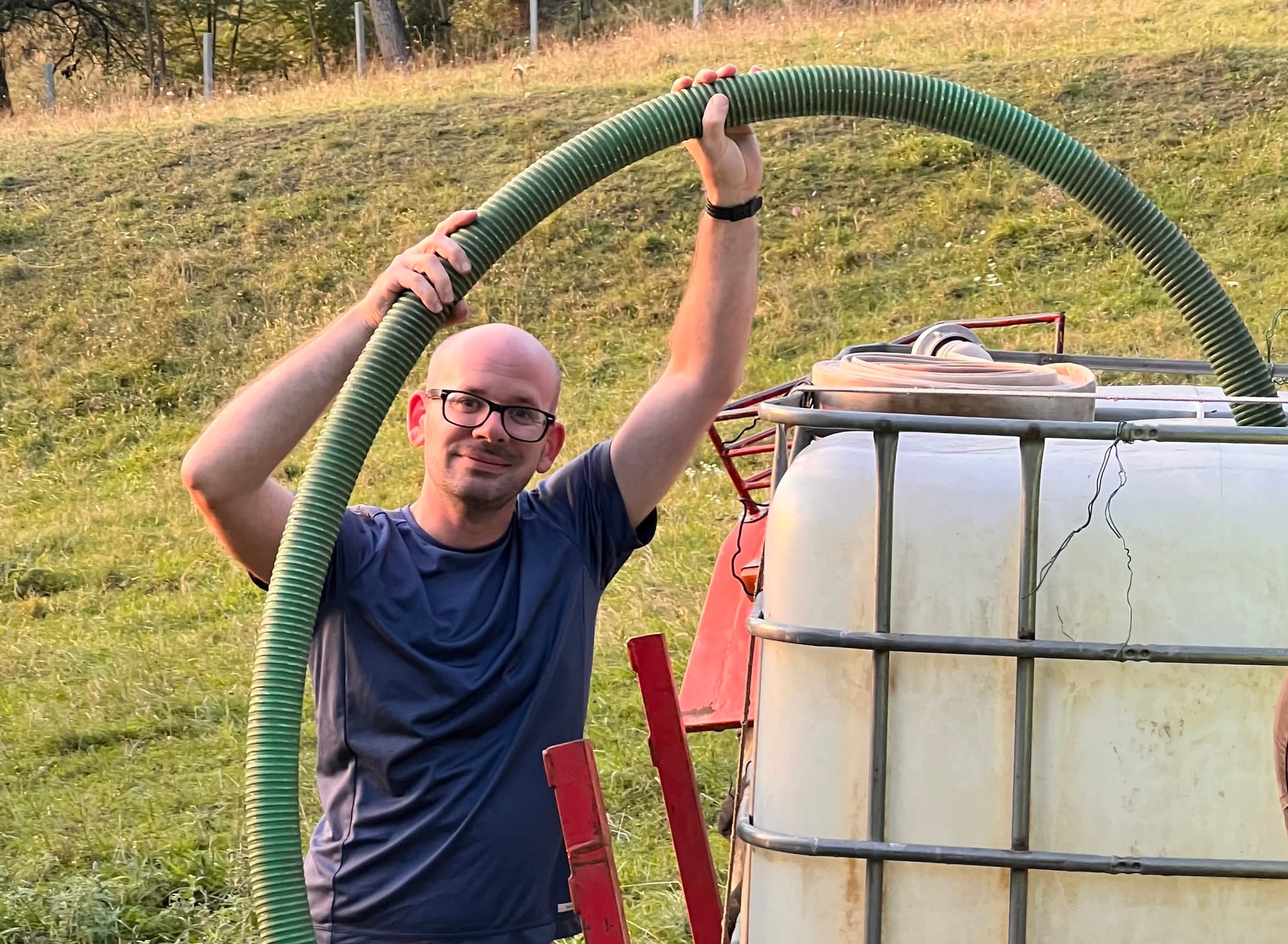 La solution d'urgence, ça a donc été d'acheter un réservoir de 6000 litres et de demander régulièrement à mon voisin de venir le remplir avec son tracteur.