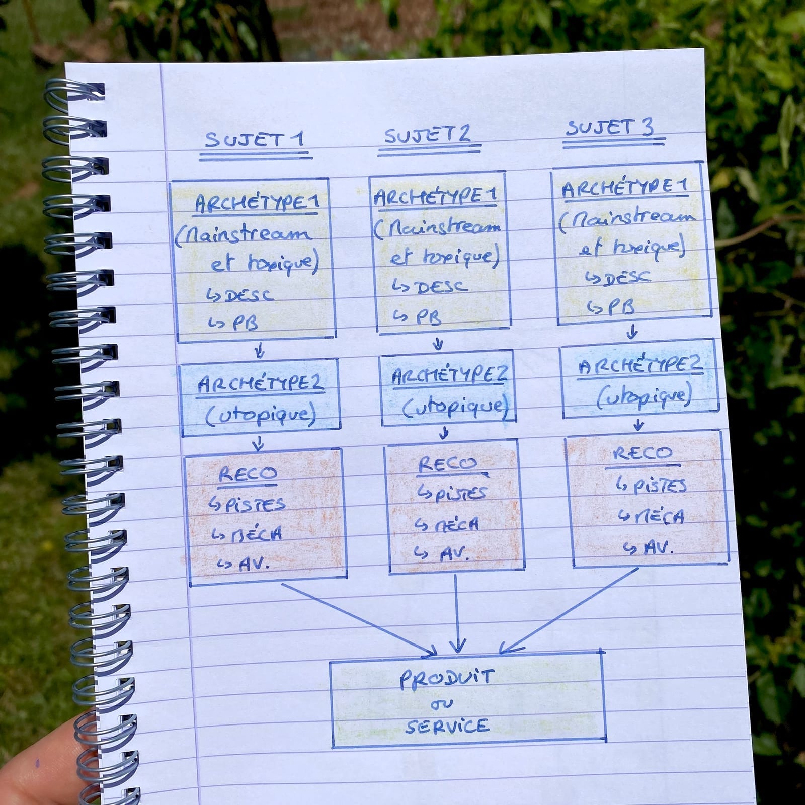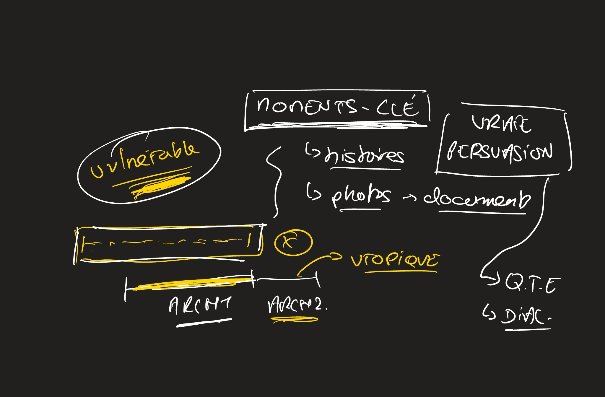 Voici par exemple mes documents de préparation de cette série d'e-mails, construits autour de ce schéma :