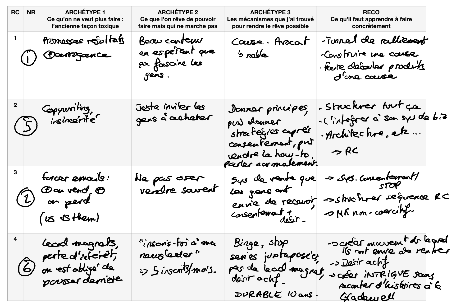 Apprends à identifier et développer une cause noble associée à des archétypes, qui vont devenir les éléments structurants de chacun de tes produits et de tous les contenus qui y seront associés (séries d'e-mails, vidéos, publications sur les réseaux sociaux, etc.).