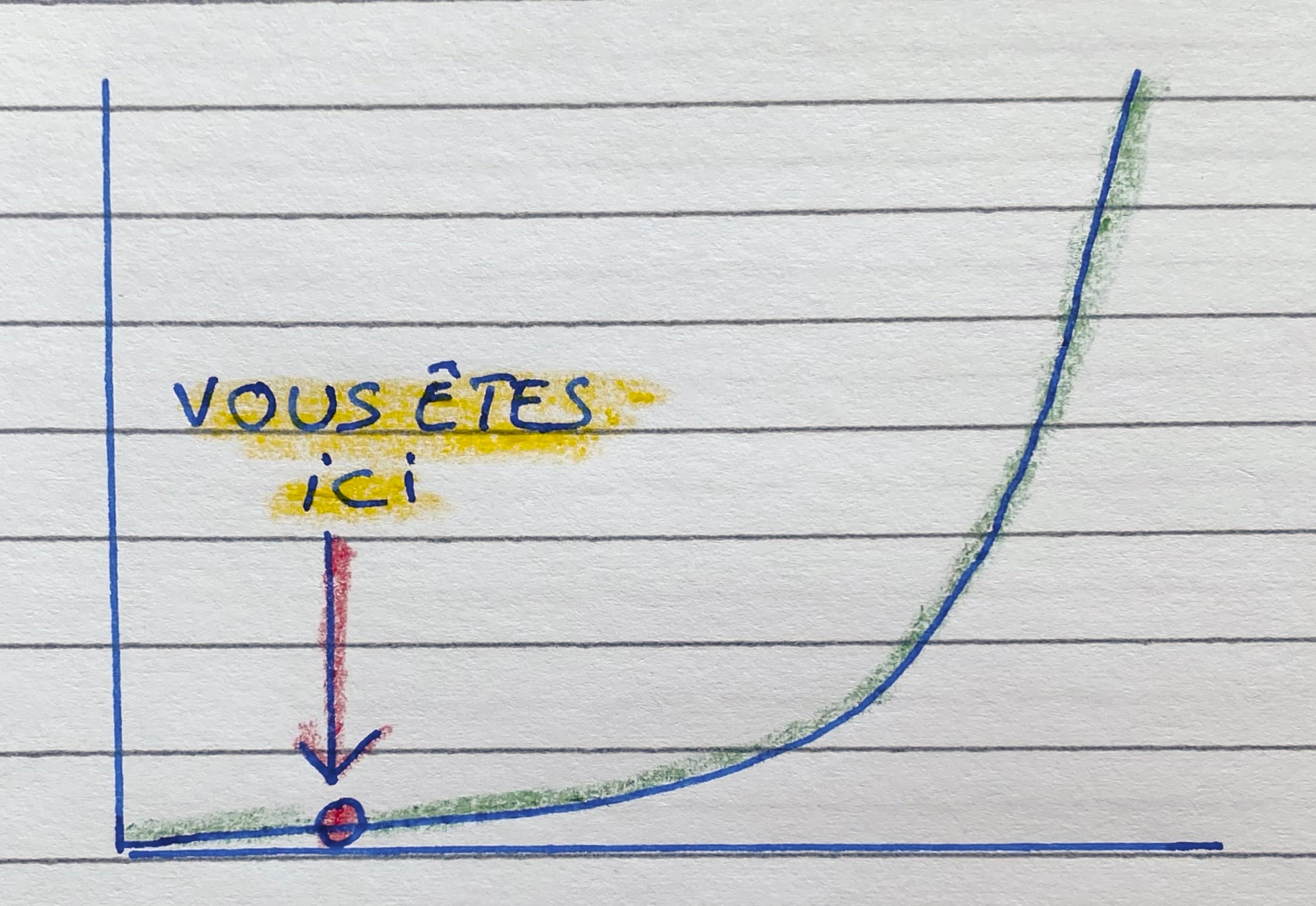 C'est juste que le concept du progrès exponentiel est tellement contre-intuitif qu'au début, il semble que ça ne fait aucun sens de continuer tellement les choses stagnent...