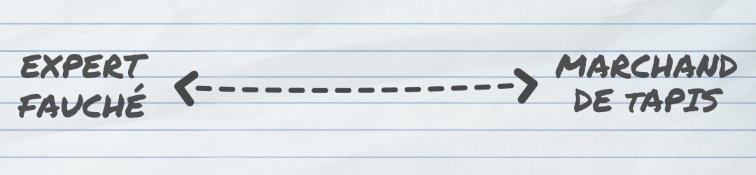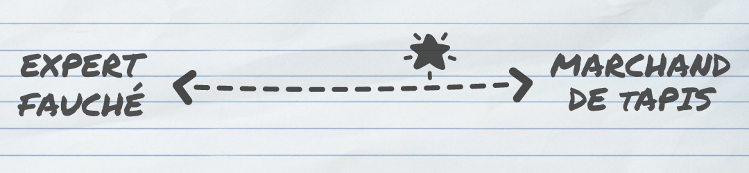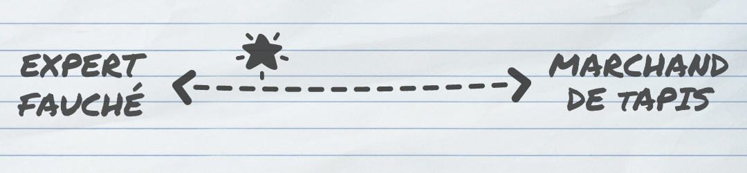 Il se positionne à l’intersection de ces trois cercles et représente la synthèse idéale que n’ont réussi à faire ni les marchands de tapis ni les experts fauchés, ni ceux qui se situent entre les deux :