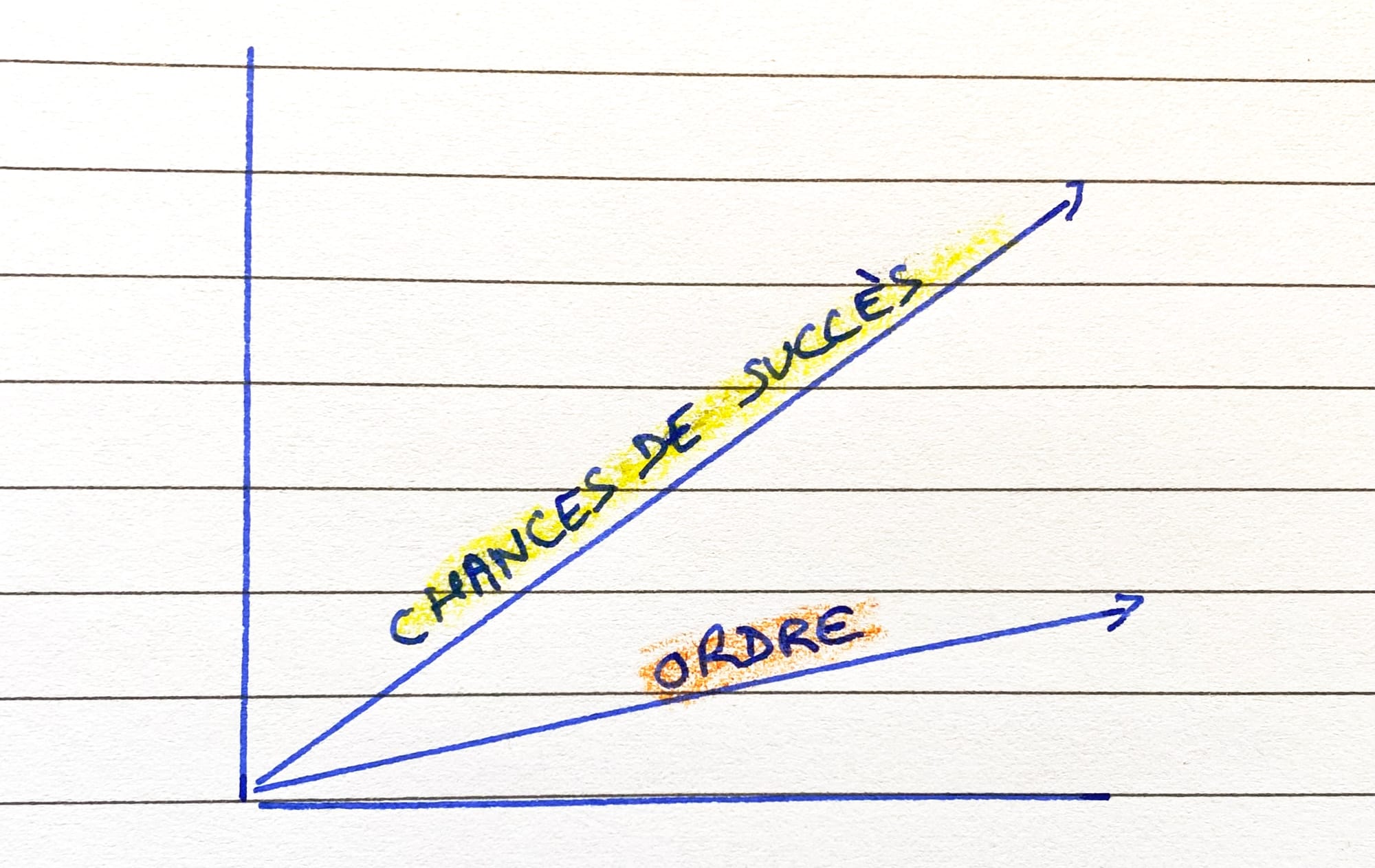 Et c'est là que j'ai eu l'un des plus grands déclics de ma vie : j'ai réalisé que les chances de réussite d'un projet sont DIRECTEMENT corrélées à l'ordre qui règne dans la vie quotidienne :