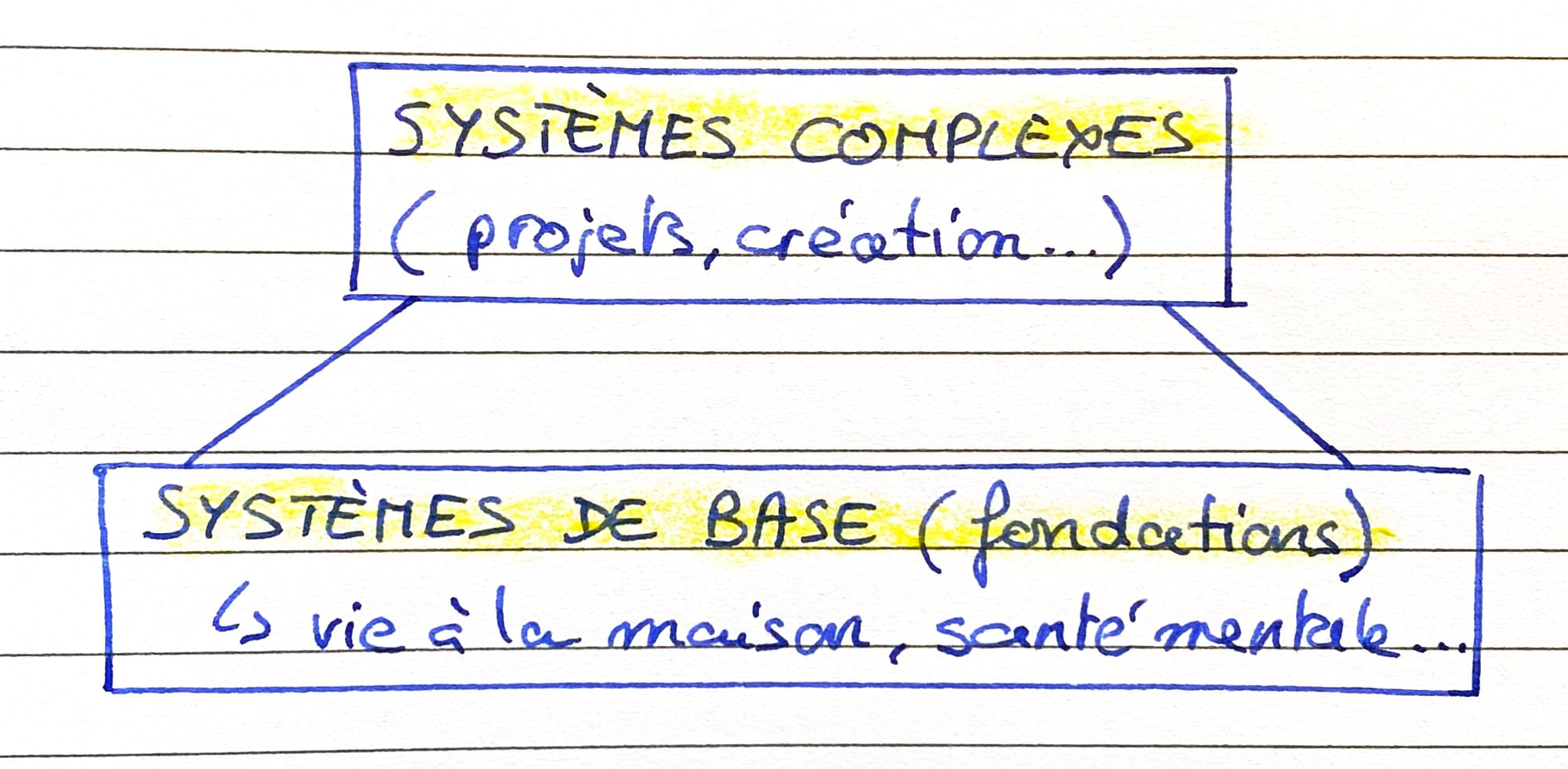 Les systèmes de base, ce sont ceux qui font fonctionner notre environnement immédiat, notre vie à la maison, notre équilibre, notre santé mentale...